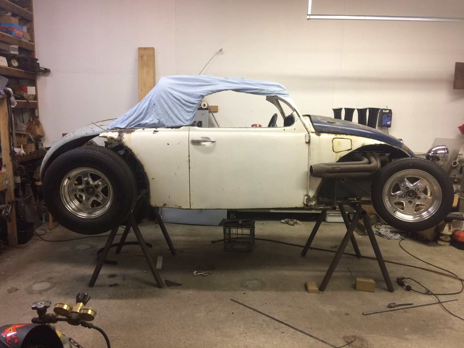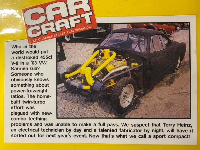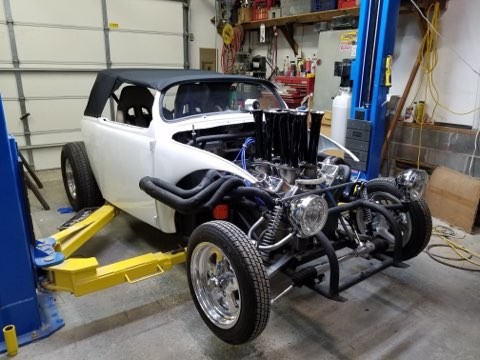 On October 2, 2006, my good friend and neighbor, Bill Field, and I hooked up to a trailer and made a road trip to North Carolina, to pick up a junk VW body that I had purchased on Ebay. Over the next 9 years, it was moved around behind my garage, then stored inside Bill’s race car trailer. We regularly discussed all the different ways to go with the build. Having already put a big block engine in a VW Bug and a twin turbo big block in a VW Karmann Ghia, what would be next? No matter how wild and unusual my ideas were, Bill was always positive and encouraged me to build what ever I envisioned.